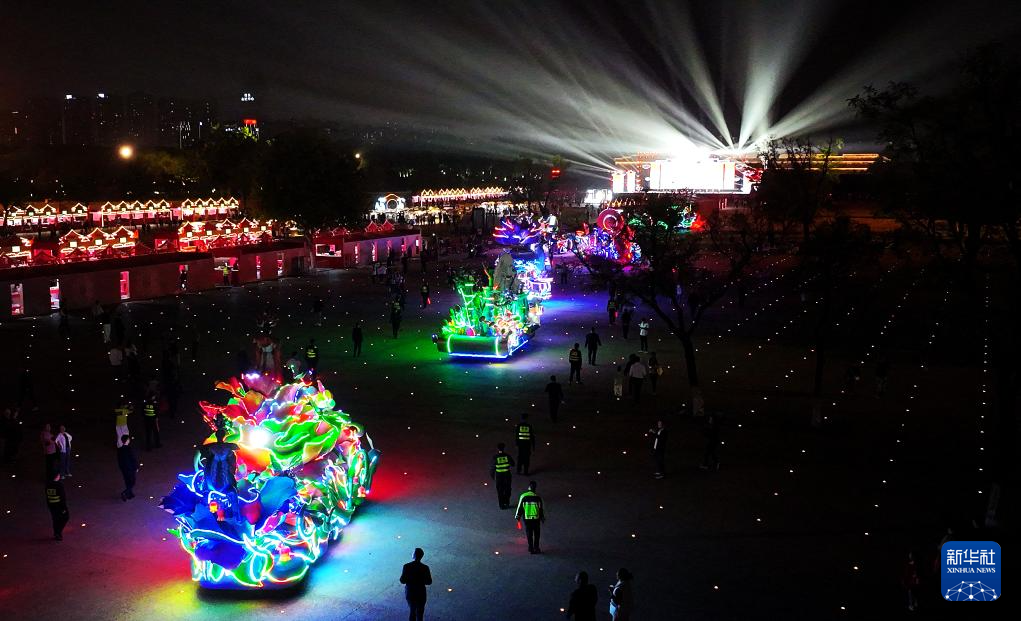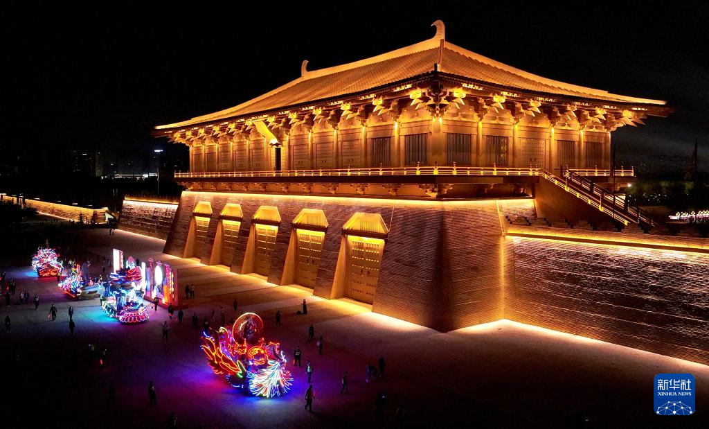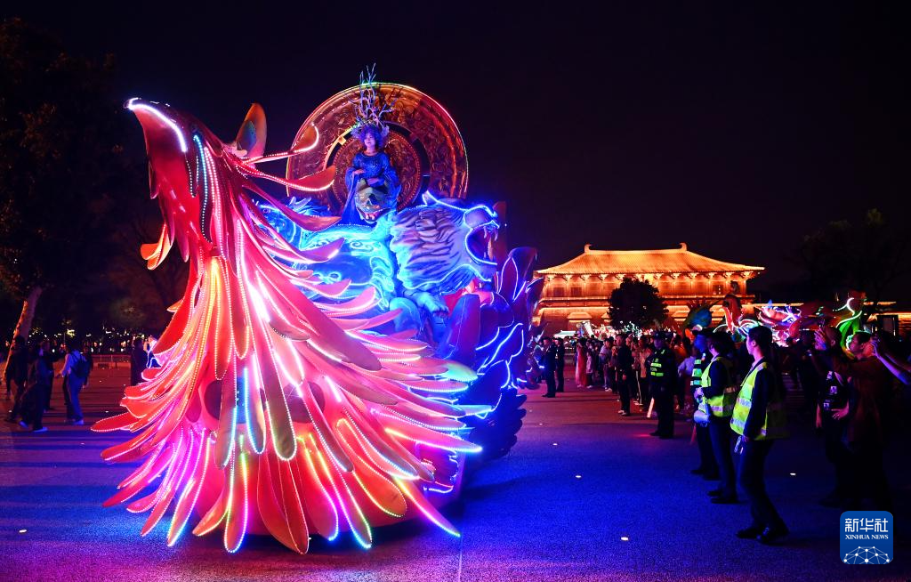 唐大明宫是盛唐时期享有盛名的宫殿群,有着“千宫之宫”的美誉。国庆期间,古风演艺、华服大秀、曲艺汇演、彩车巡游等一系列活动在大明宫国家遗址公园持续上演。夜幕之下,盛唐文化与现代时尚在此相映生辉,吸引市民游客前来参观打卡。