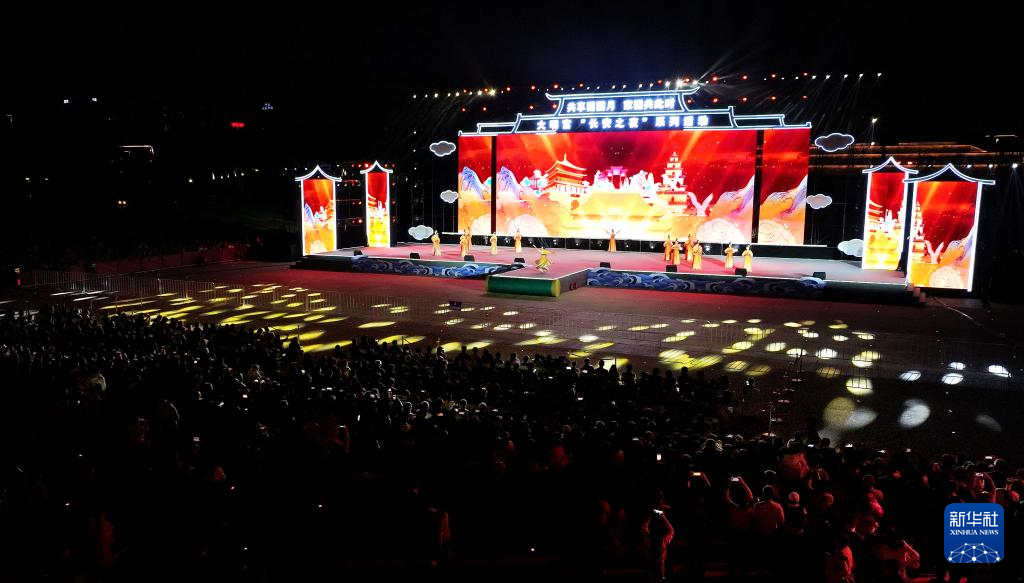 西安大明宫国家遗址公园丹凤门前进行的唐风演出(9月30日摄)。