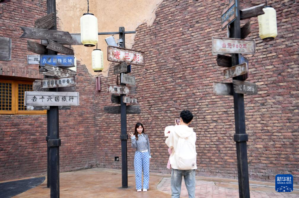 10月6日,游客在“只有河南·戏剧幻城”景区内游玩拍照。