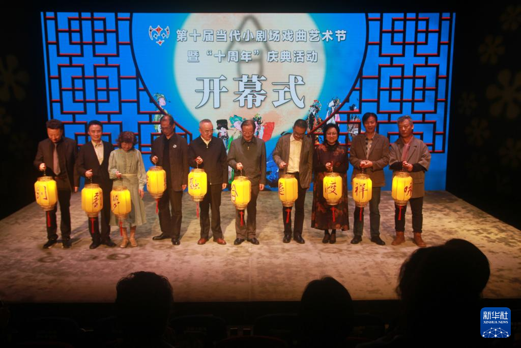 10月11日晚,与会嘉宾在活动现场共同启动第十届当代小剧场戏曲艺术节。