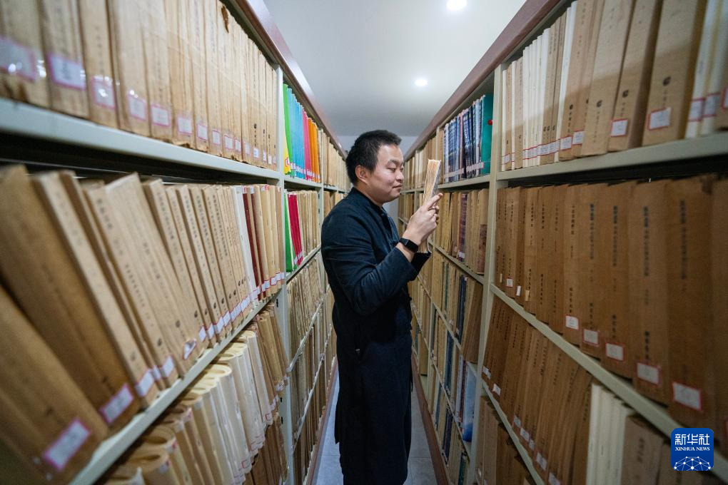 10月15日,一名视障人士在云南省图书馆视障阅览室内挑选盲文书。