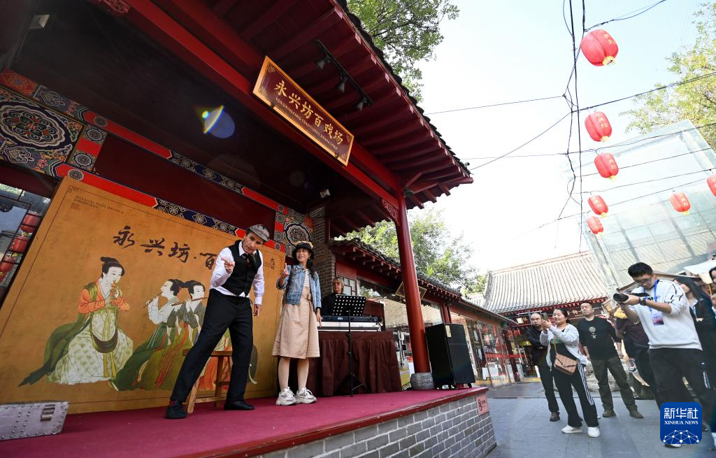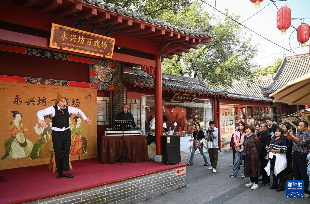 10月16日,观众在西安永兴坊欣赏默剧表演。