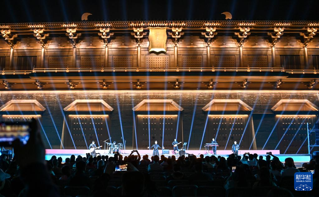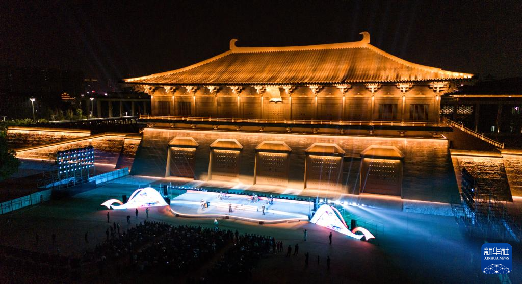 10月16日,在西安大明宫国家遗址公园,来自塞尔维亚的飞龙和巴尔干城邦乐团进行专场惠民演出(无人机照片)。
