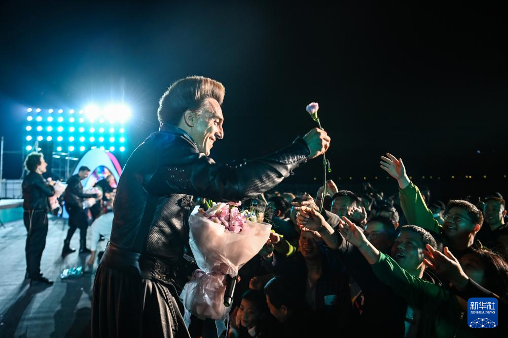 10月16日,在西安大明宫国家遗址公园,来自塞尔维亚的飞龙和巴尔干城邦乐团进行专场惠民演出。