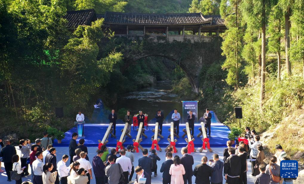 10月16日,与会嘉宾参加泰顺旗峰桥文保修复项目开工仪式。