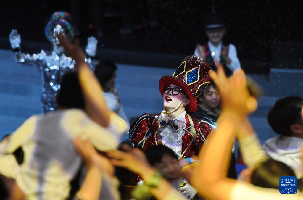 10月24日,来自阿根廷、哥伦比亚的杂技演员在表演《高空钢丝》。