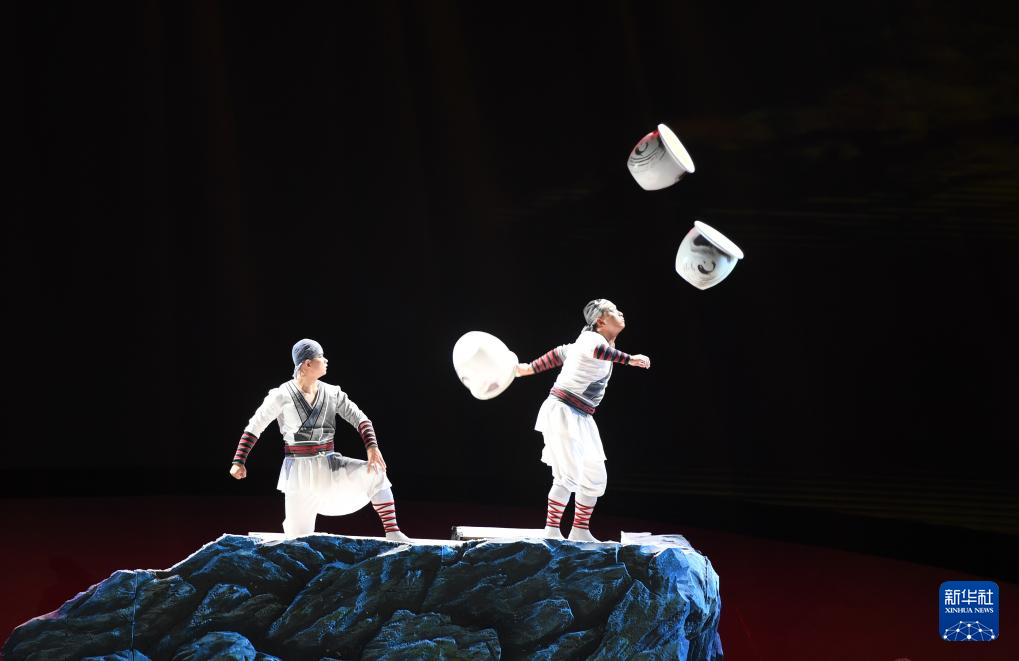10月24日,中国杂技演员在表演《雄鹰—抖杠》。