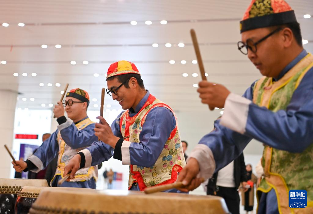 11月7日,演员在2023黄河非遗大展上表演绛州鼓乐。