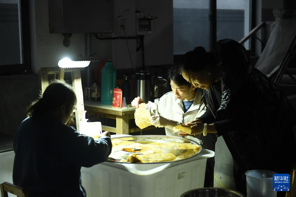 11月9日,工作人员在开化纸传统技艺工坊制纸。