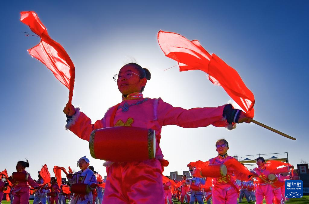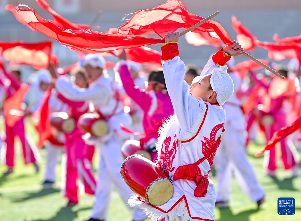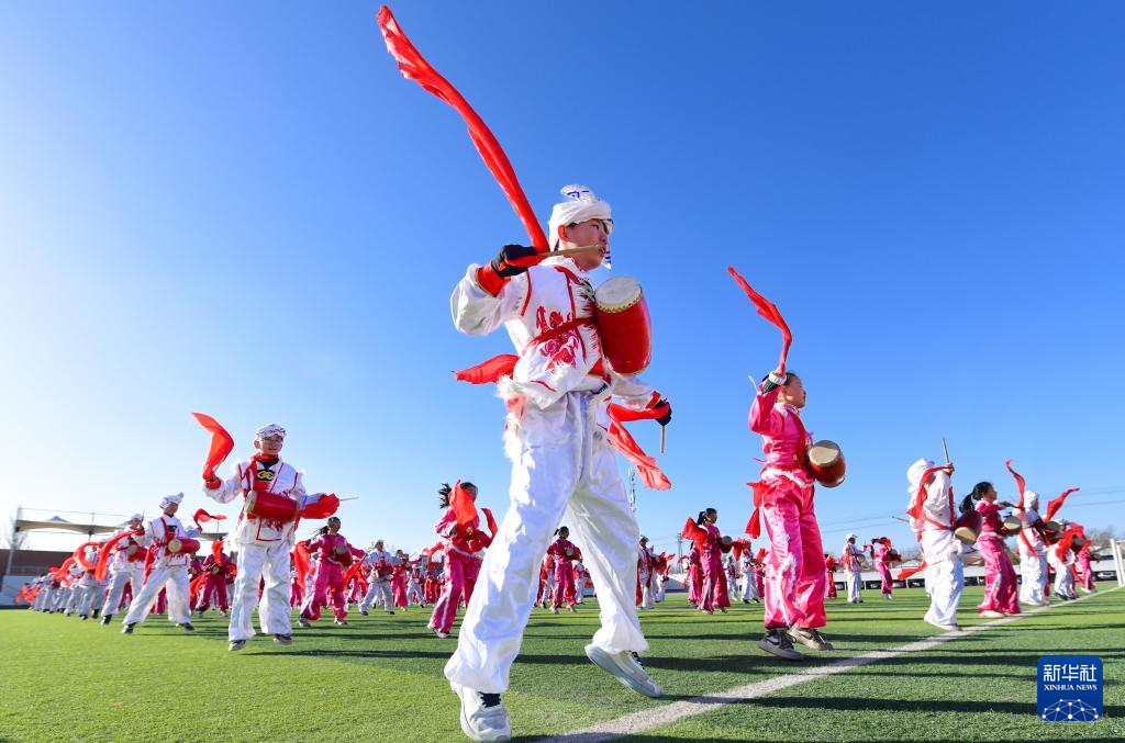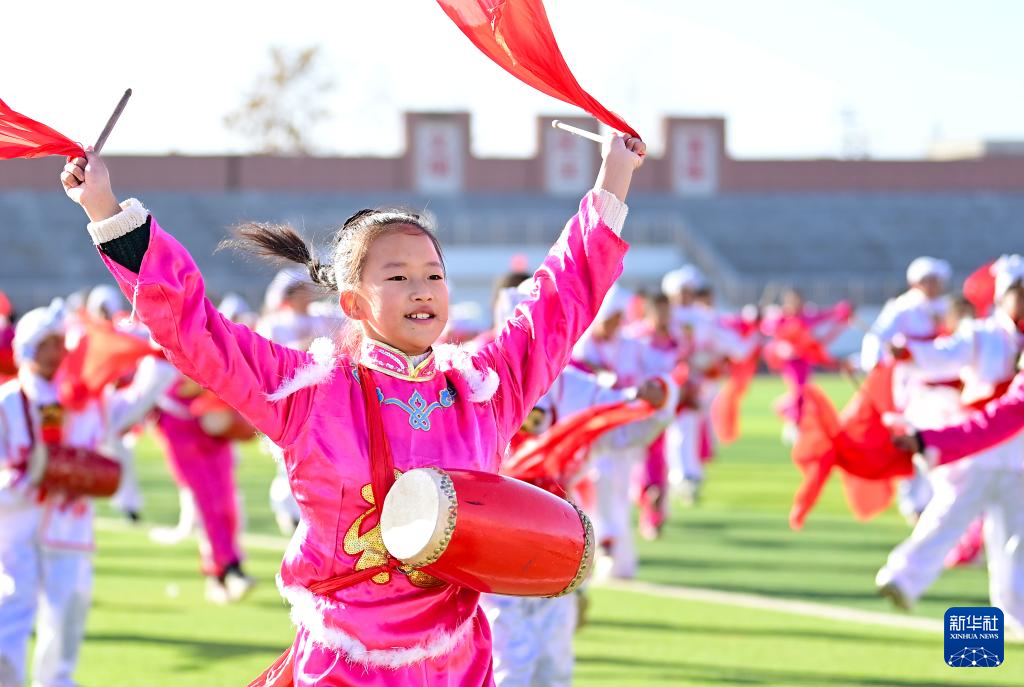 近年来,内蒙古鄂尔多斯市鄂托克前旗第二小学将安塞腰鼓列入学校的校本课程和大课间活动,聘请民间艺人传授技艺,让非遗文化在校园中传承。