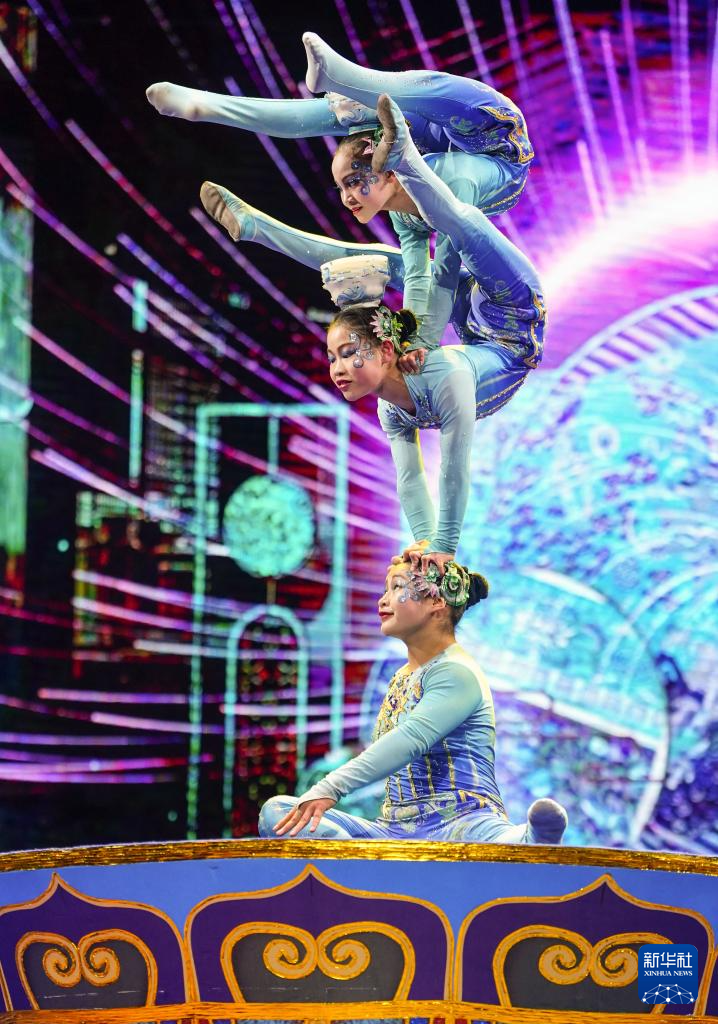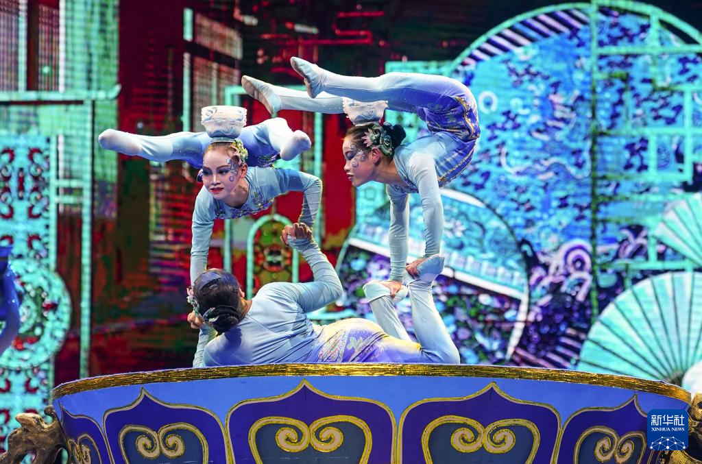 这是武汉杂技艺术有限责任公司带来的杂技《扬帆追梦·浪船》(11月17日摄)。
