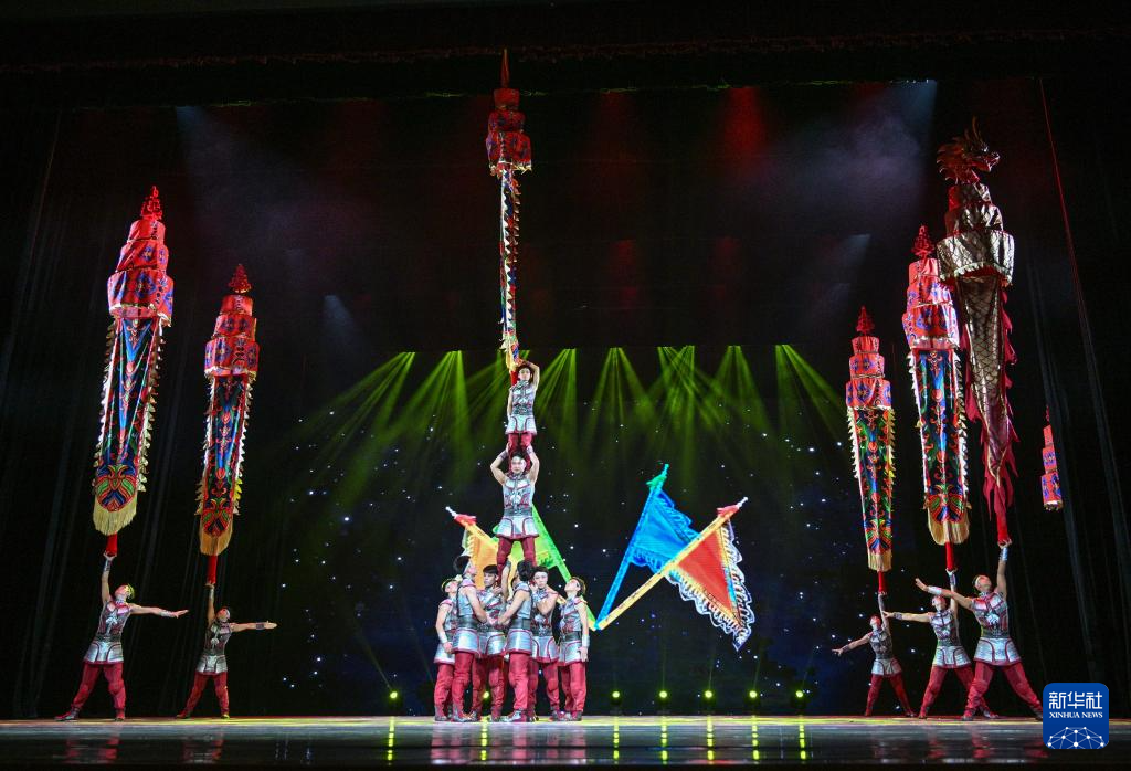 这是沧州杂技团、吴桥杂技学校带来的杂技《龙跃神州——中幡》(11月17日摄)。