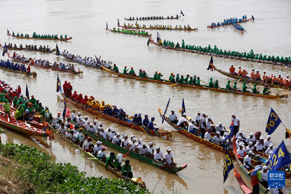 11月26日,在柬埔寨首都金边,人们参加赛龙舟活动。