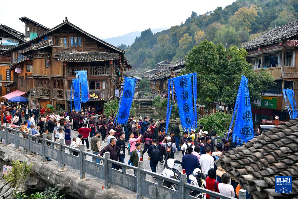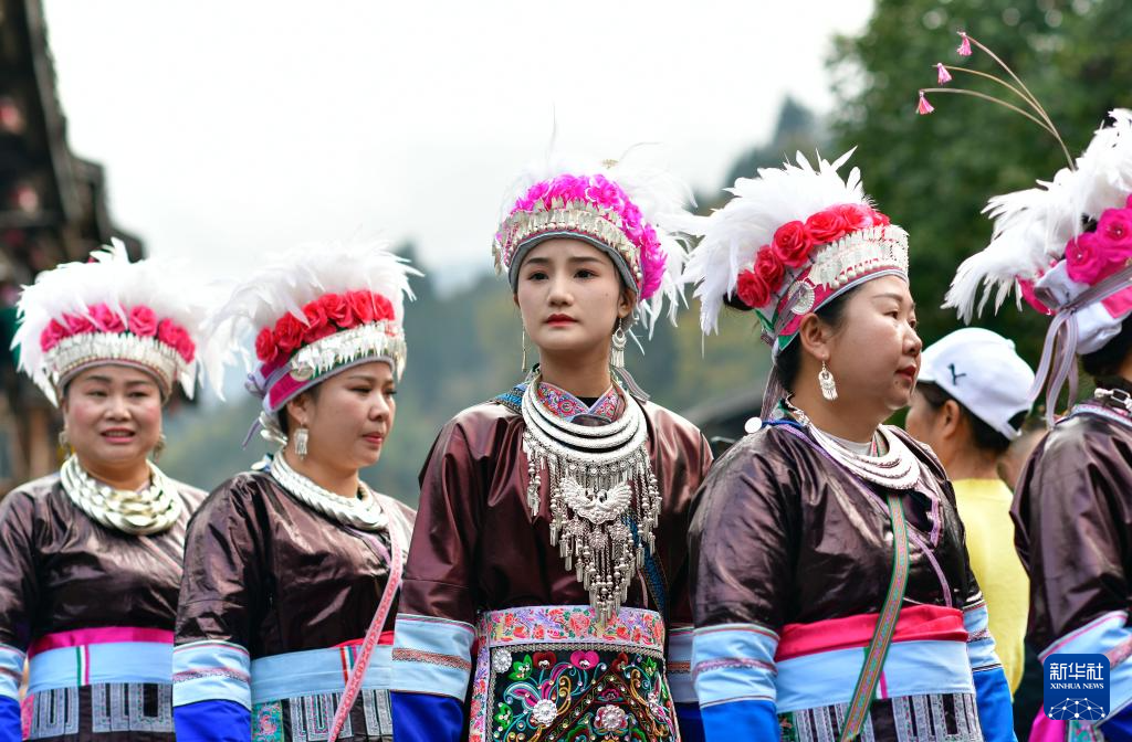 12月15日,在贵州省黎平县肇兴侗寨,侗族群众身着节日盛装参加侗年巡游活动。