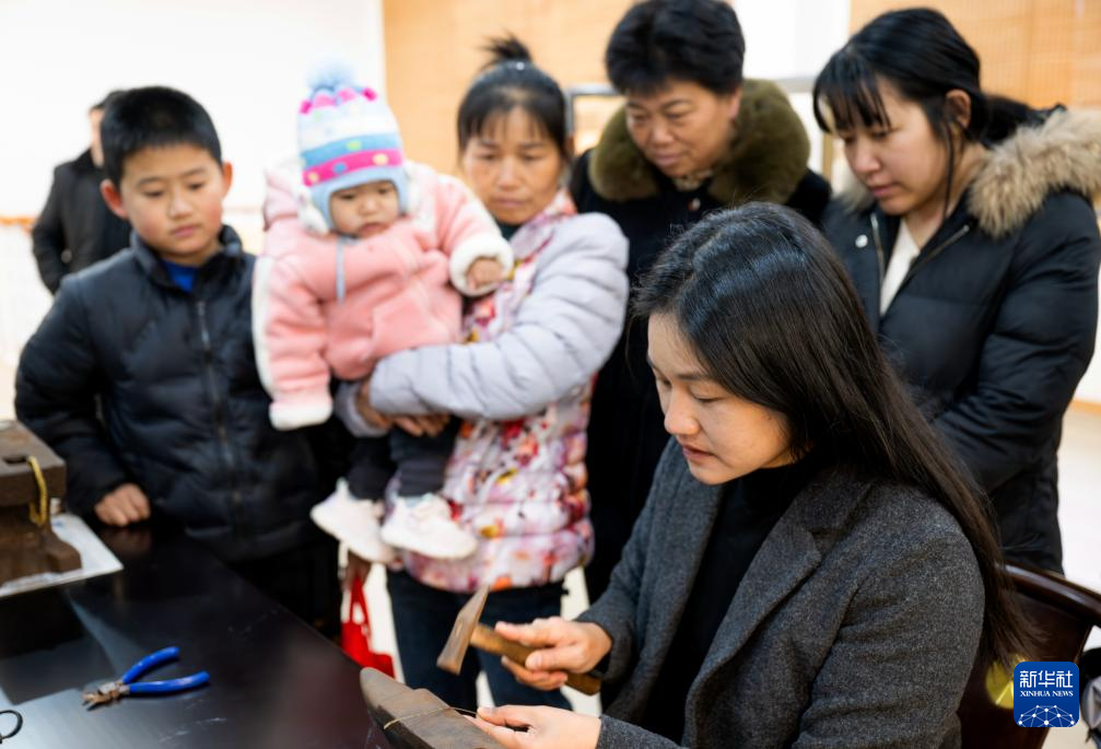 12月16日,在肖家山美育研学基地,非遗传承人王艳青展示锔瓷技艺。
