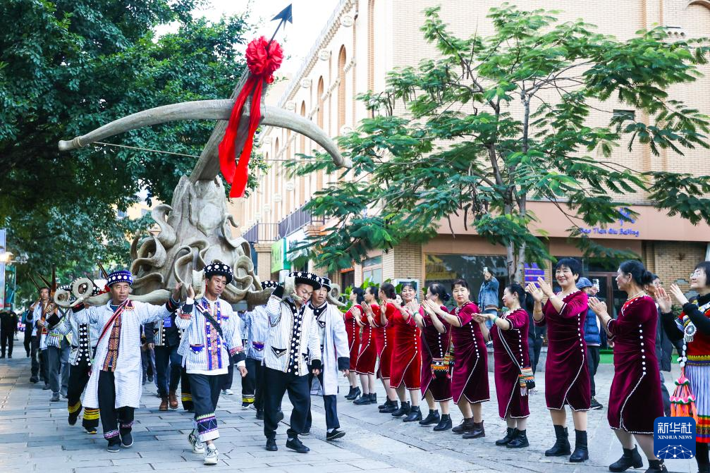 12月20日,祈福队伍在阔时文化节开幕现场进行“启弩”巡游表演。