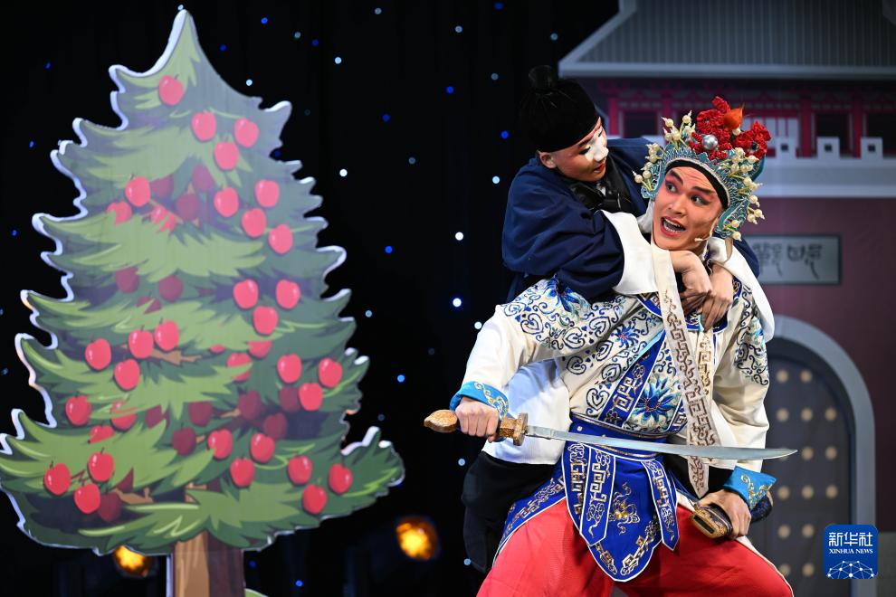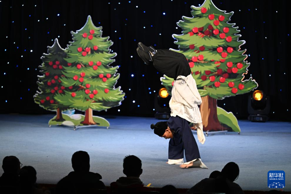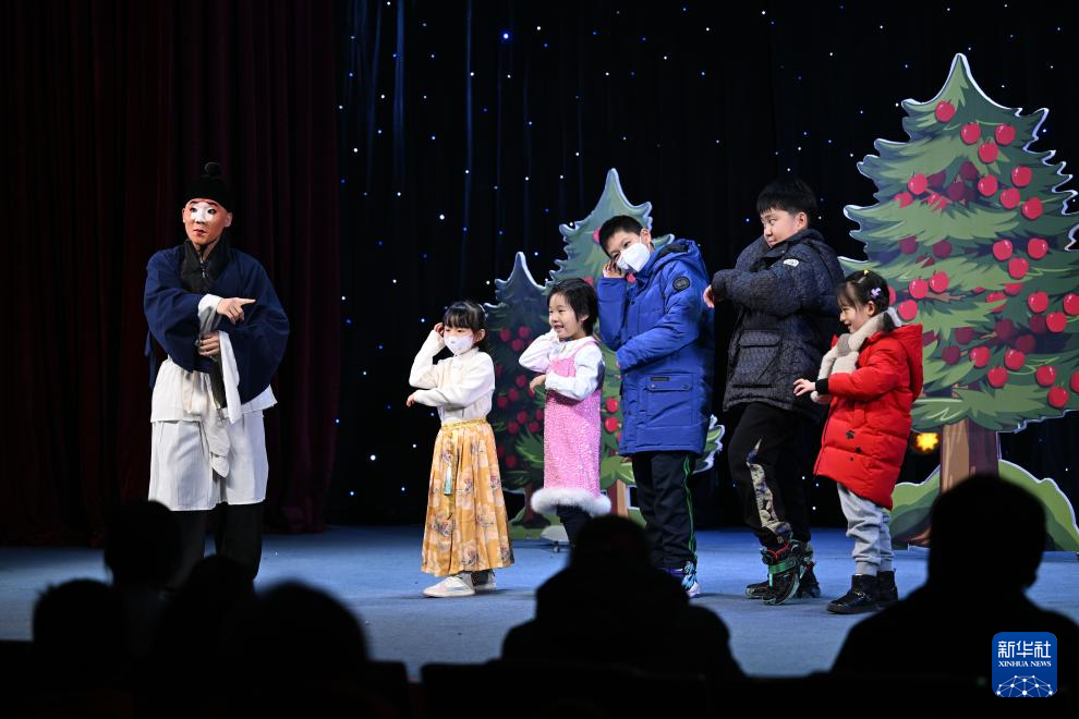 12月23日,演员在台上表演戏剧儿童剧《故事宝盒》。