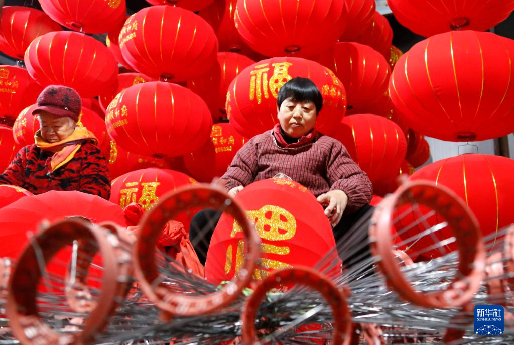 新年临近,河北省邢台市南和区的灯笼作坊加紧制做红灯笼,供应节日市场。