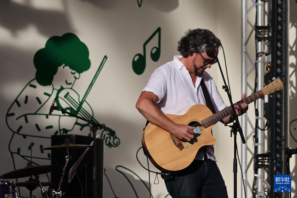 1月9日,乐手在新西兰惠灵顿植物园的音乐节现场演奏。
