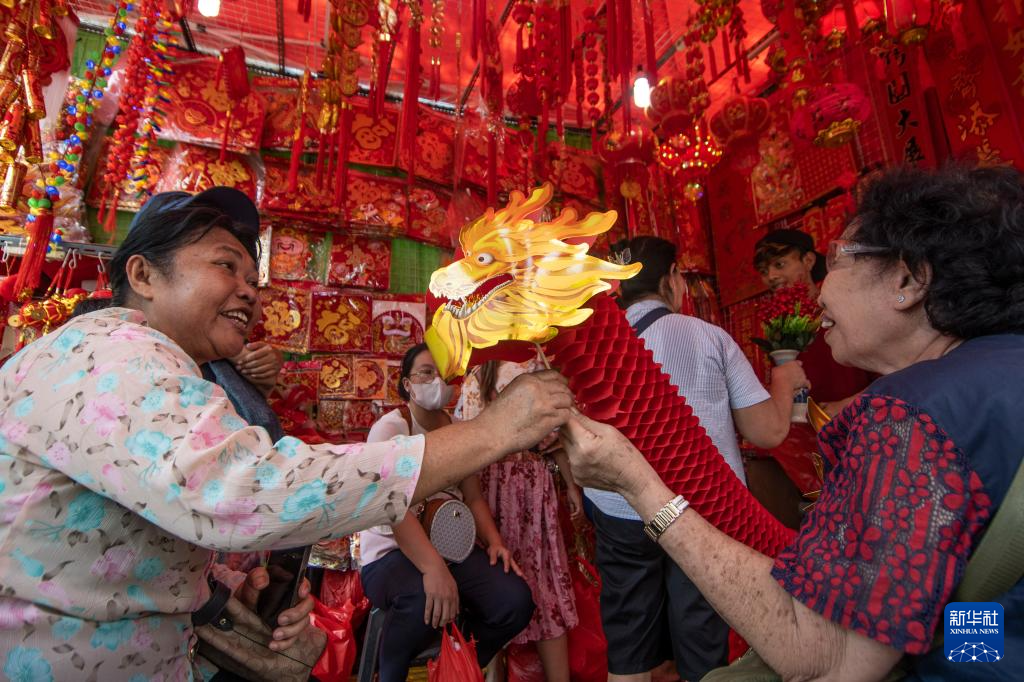 随着龙年春节临近,印尼雅加达民众开始采购年货迎接节日的到来。