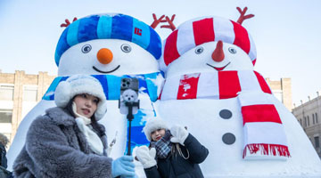 游客在位于山西省长治市上党区红绿彩村的八义窑红绿彩博物馆参观(1月4日摄)。