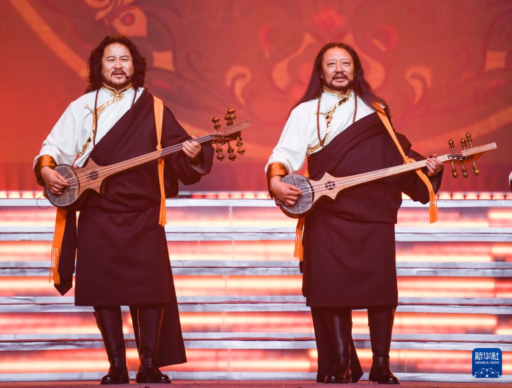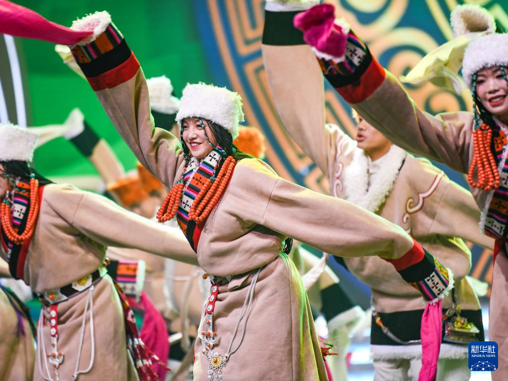 1月13日,演员在藏历木龙新年联欢会录制现场表演。