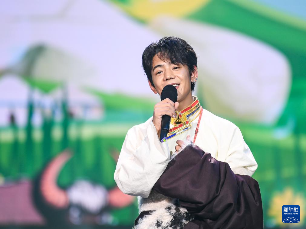 1月13日,演员丁真珍珠在藏历木龙新年联欢会录制现场表演。