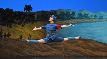 1月14日,在江苏省海安市雅周镇兴雅社区百姓广场上,文化志愿者在表演杂技节目(无人机照片)。