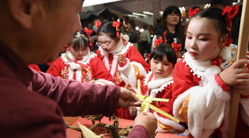 1月14日,民间艺人在山东省烟台市芝罘区东方文化市场表演当地民俗。