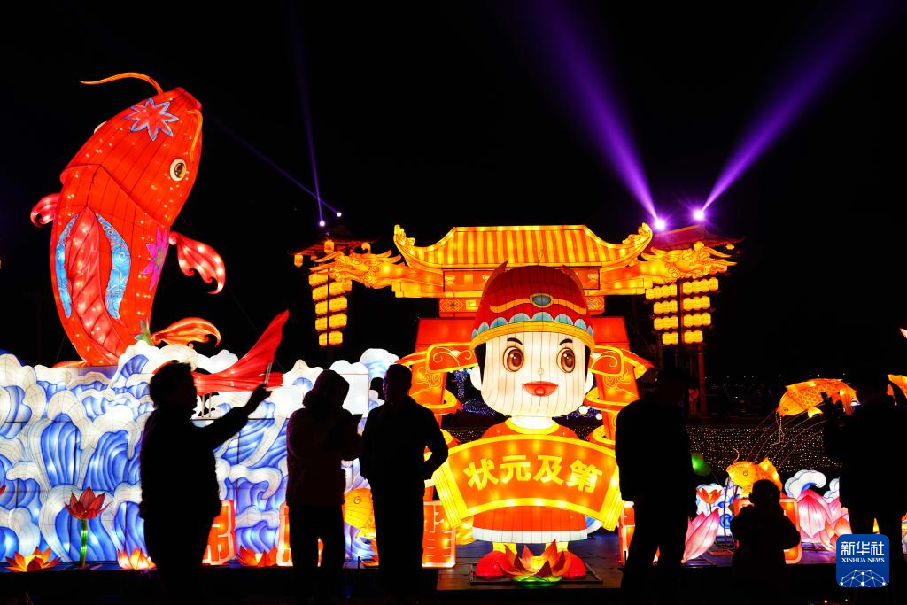 1月13日,人们在浙江省瑞安市曹村镇新春灯会上观赏。