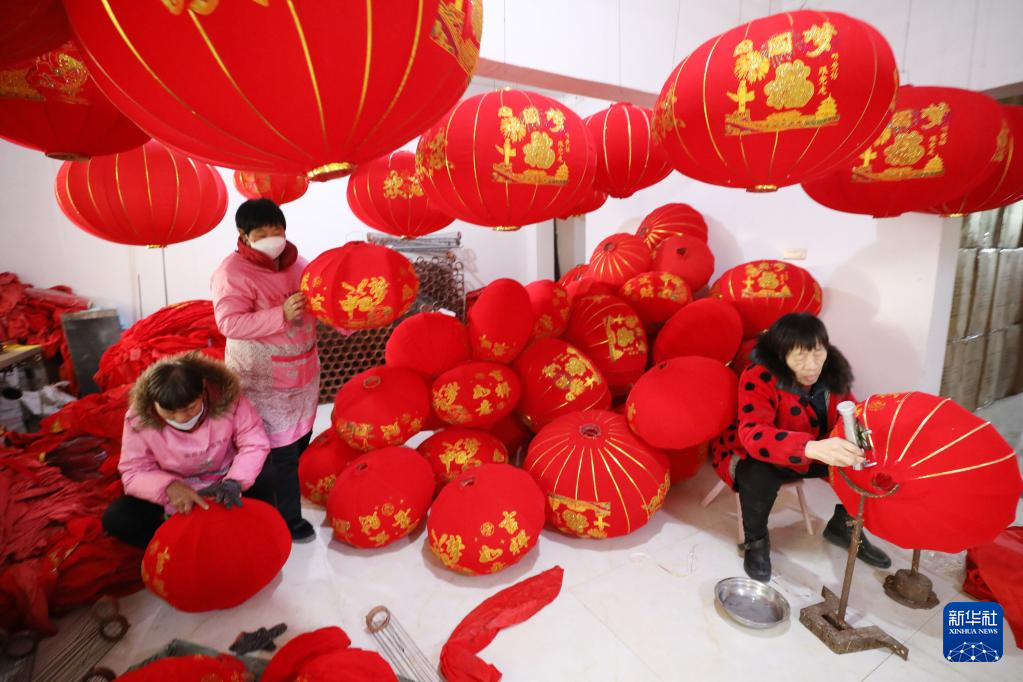 1月14日,河南省焦作市温县北冷乡许北张村村民在赶制大红灯笼。