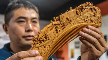 1月15日,行人从杭州吴山广场上以龙为主题的雕塑作品边经过。