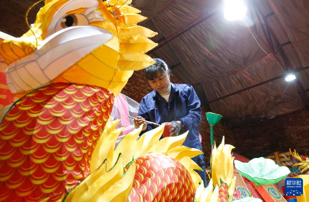 1月18日,工人在河北省邢台市南和区史召乡一家节庆饰品作坊赶制灯笼。