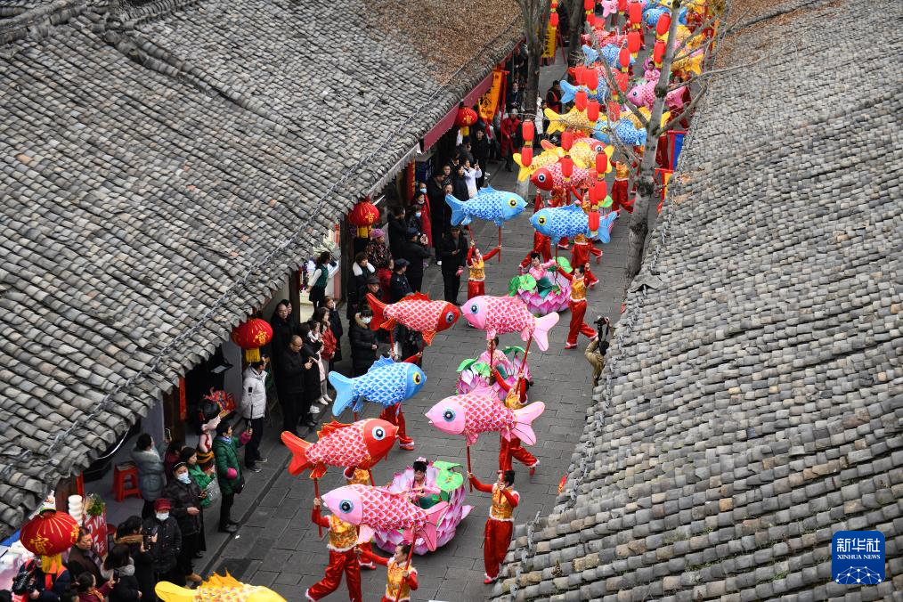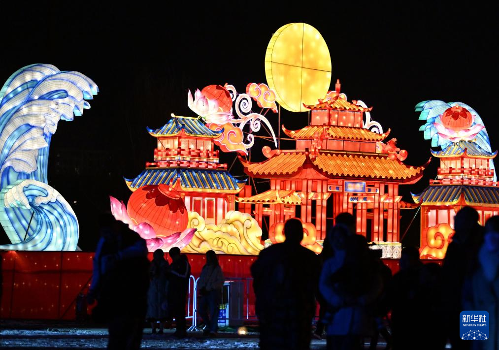 1月18日,天津市西青区杨柳青国潮灯展亮灯仪式在杨柳青镇举行。