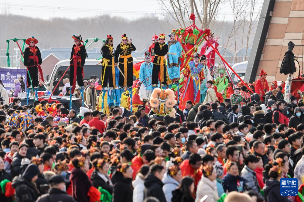 1月18日,在山东省淄博市高青县举行的山东乡村文化旅游节启动仪式现场,当地居民在观看民俗表演。