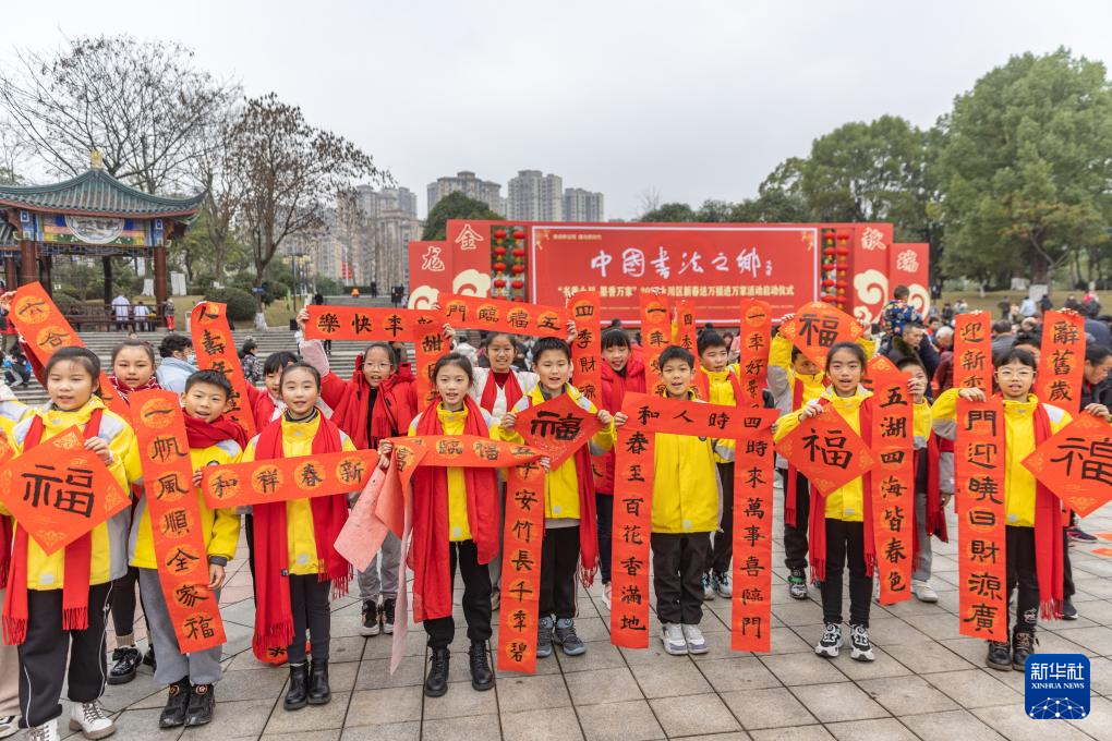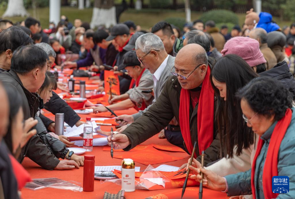 1月18日,重庆市永川区举办“书香永川·墨香万家”为主题的新春送万福进万家活动,组织当地书法家、民间文艺家及部分学校师生现场书写春联、写福字、做剪纸,并将其免费赠送给广大市民。