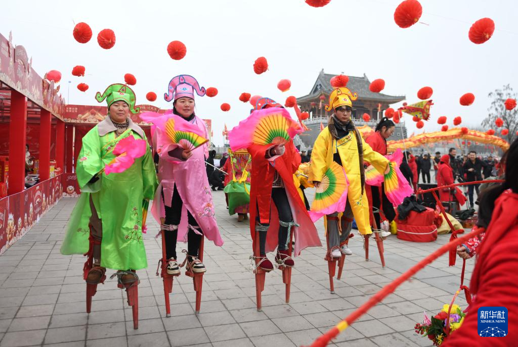 1月18日,在山东省临沂市郯城县马头镇,演员在首届郯马土特产文化节活动现场进行年俗表演。
