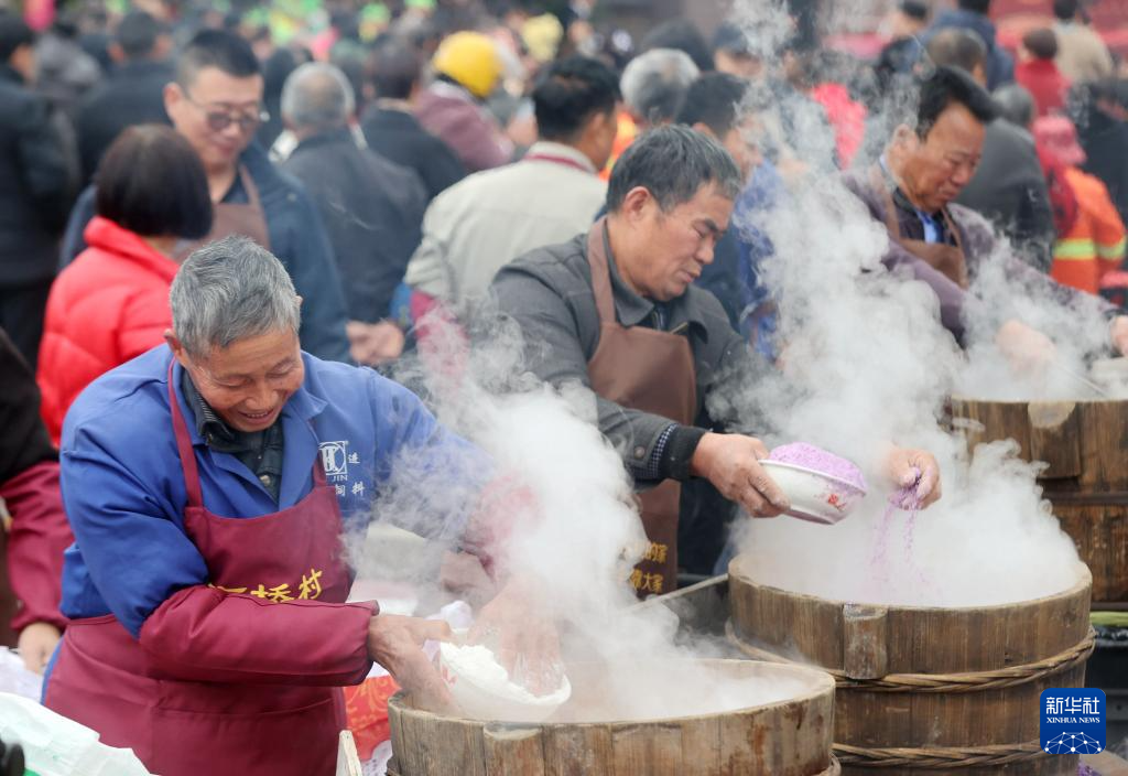 1月18日,浙江省湖州市德清县禹越镇高桥村举办第三届年高(糕)文化节,村民与游客一起打年糕、做糕粉、看表演,感受江南水乡民俗氛围。