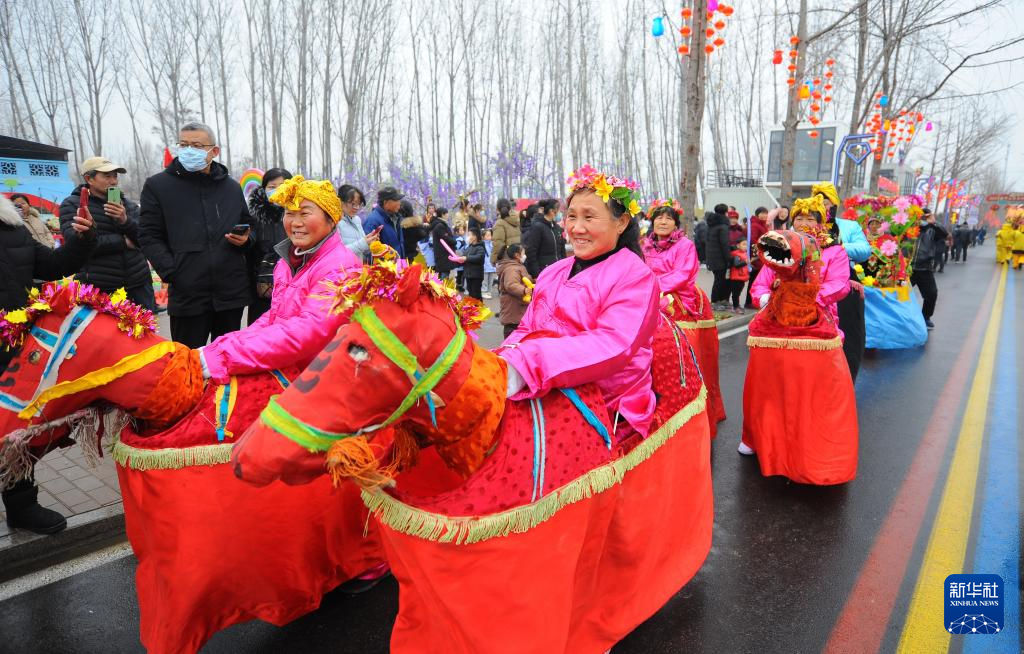 1月18日,山东省聊城市东昌府区堂邑镇民间文艺表演队在表演跑毛驴。