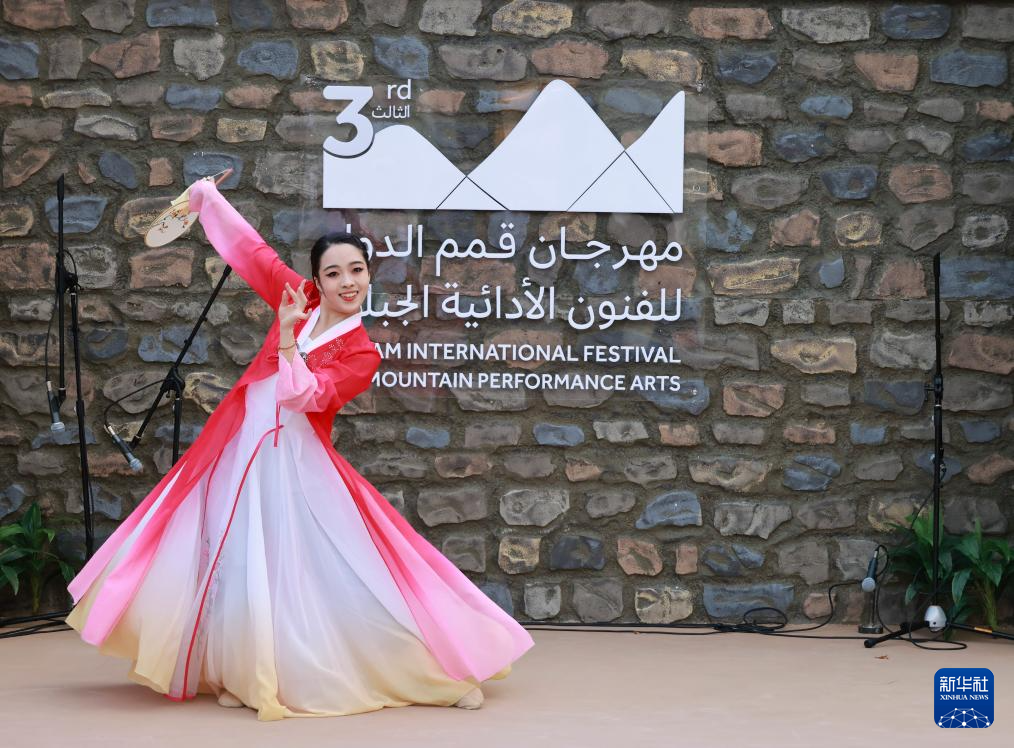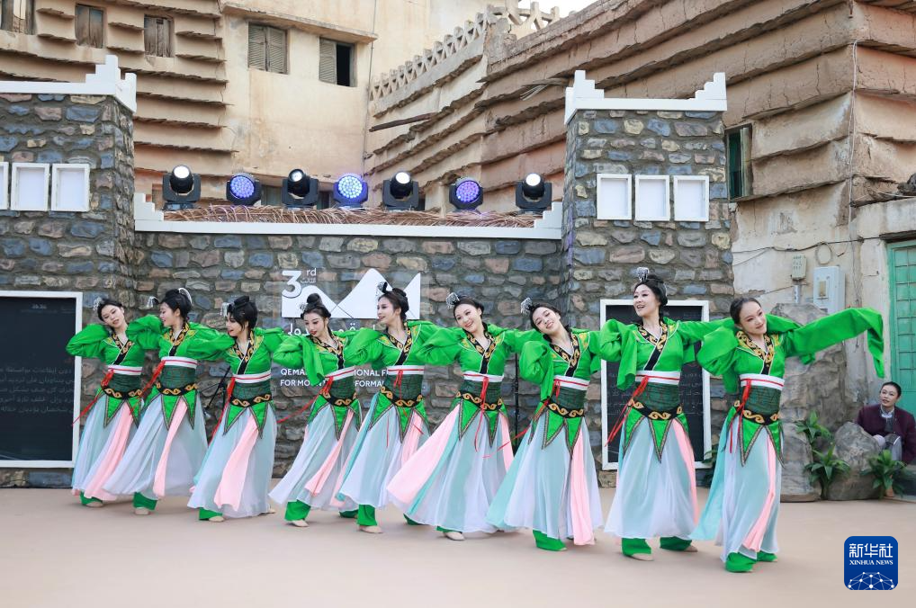 1月21日,中国舞蹈演员在沙特阿拉伯西南部阿西尔地区举办的第三届沙特奎马姆国际山地表演艺术节上表演。