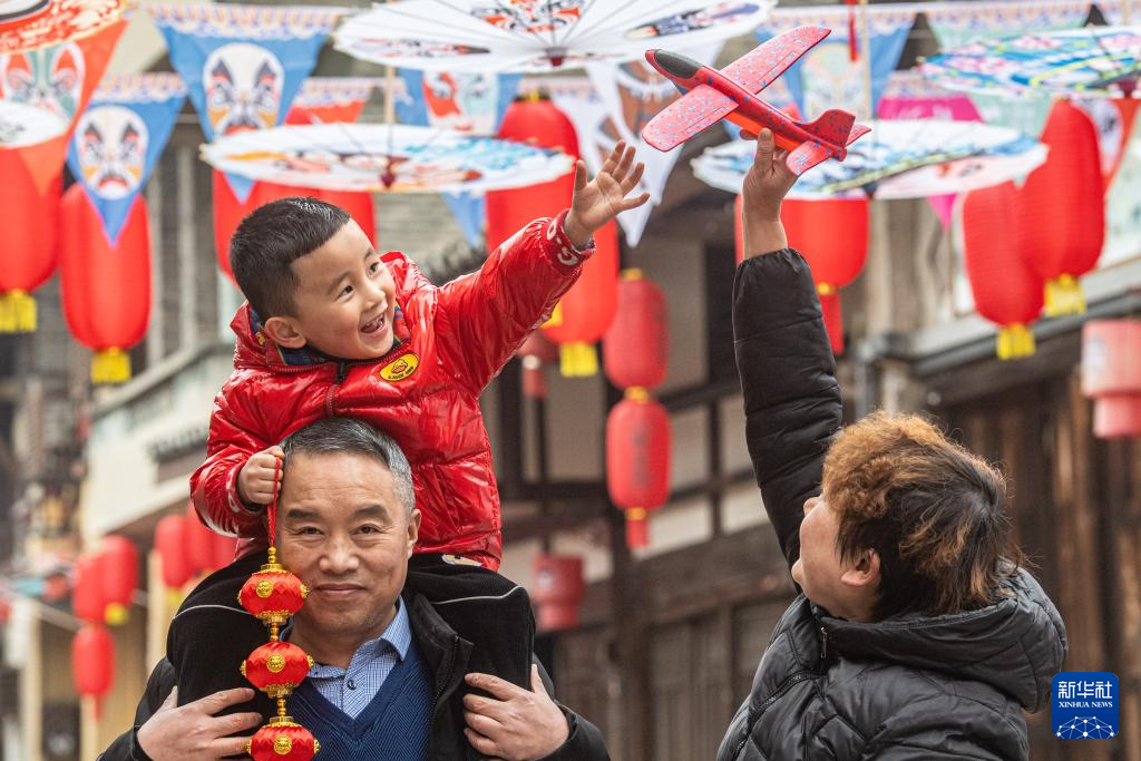 1月30日,居民在重庆市大足区雍溪古镇老街上感受春节氛围。