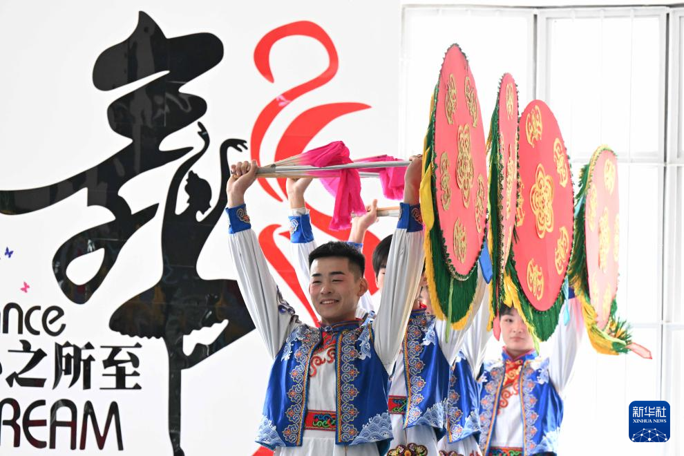 1月31日,学生在河北省石家庄市井陉县职教中心排练非遗舞蹈井陉拉花,为迎接新年演出做准备。