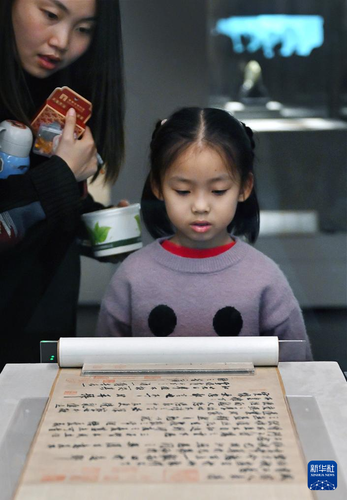 1月31日,身着古装的讲解员在向观众介绍展品。