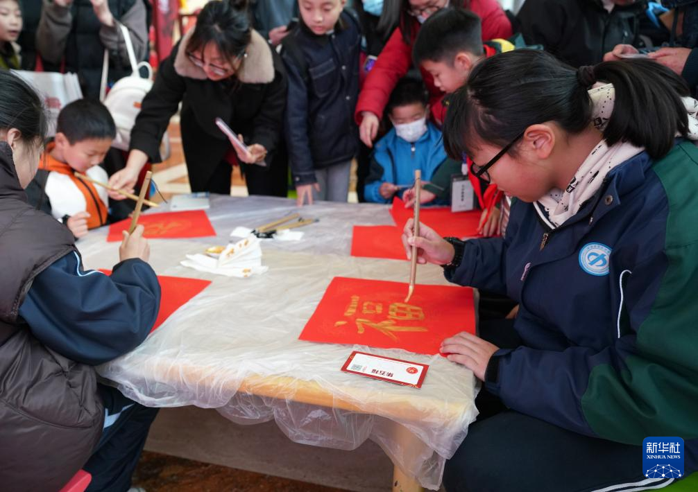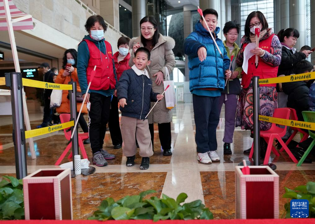 当日,浙江自然博物院杭州馆举办“喜迎辰龙新年集市”,前来观展的家长和孩子们参与投壶、写春联、拓印、剪纸等活动,体验非物质文化遗产的魅力,迎接龙年新春佳节。