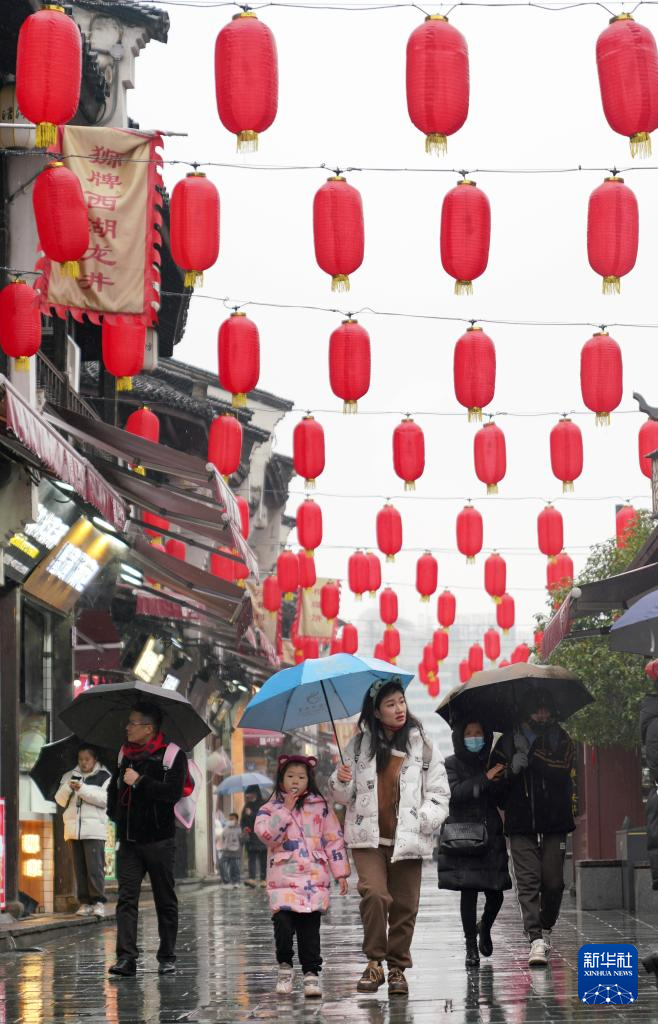 2月6日,游客在游览杭州河坊街。