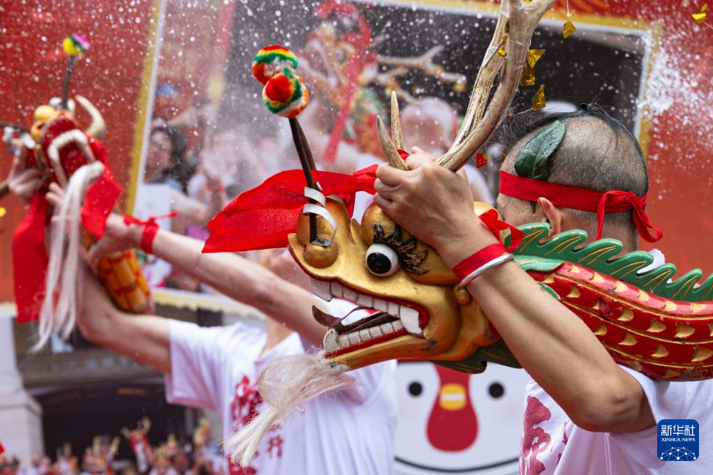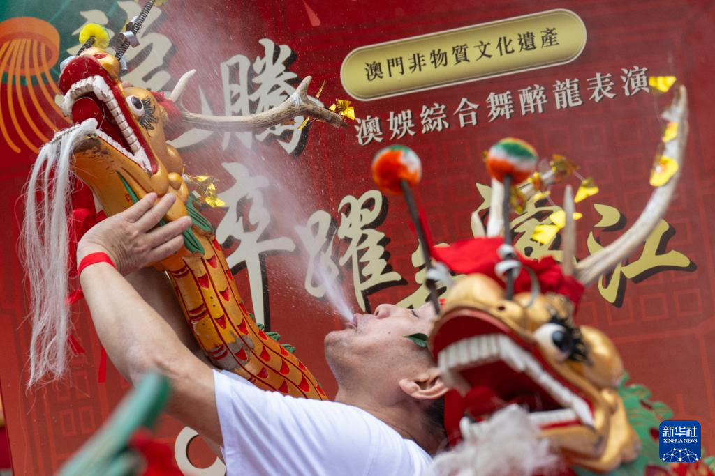 当日,澳门鲜鱼行总会在澳门中区举行“龙腾醉耀舞濠江”舞醉龙表演,展现非物质文化遗产的魅力,热闹贺新春。
