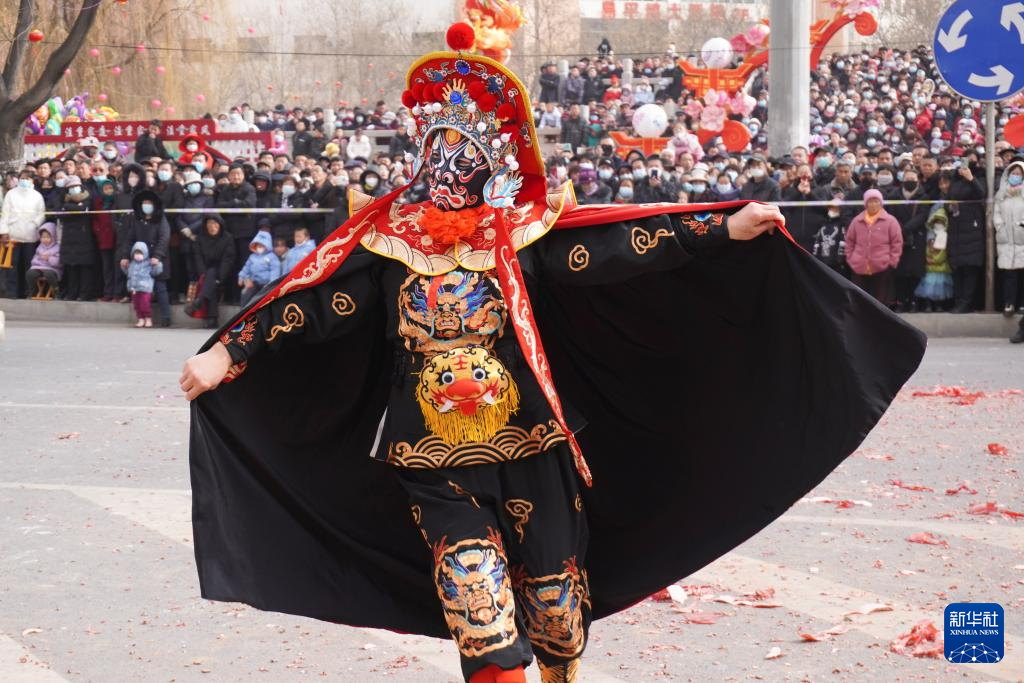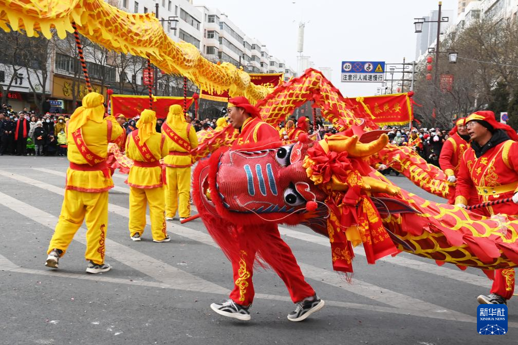 当日是农历正月十一,在甘肃省兰州市榆中县,多个农村社火队在县城进行展演,舞龙舞狮,热闹非凡。