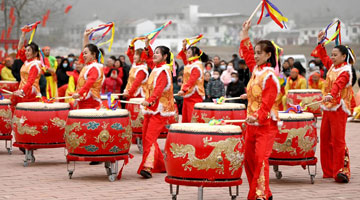 在广西宾阳县文化广场,人们在炮龙比赛中舞龙(2016年2月16日摄)。