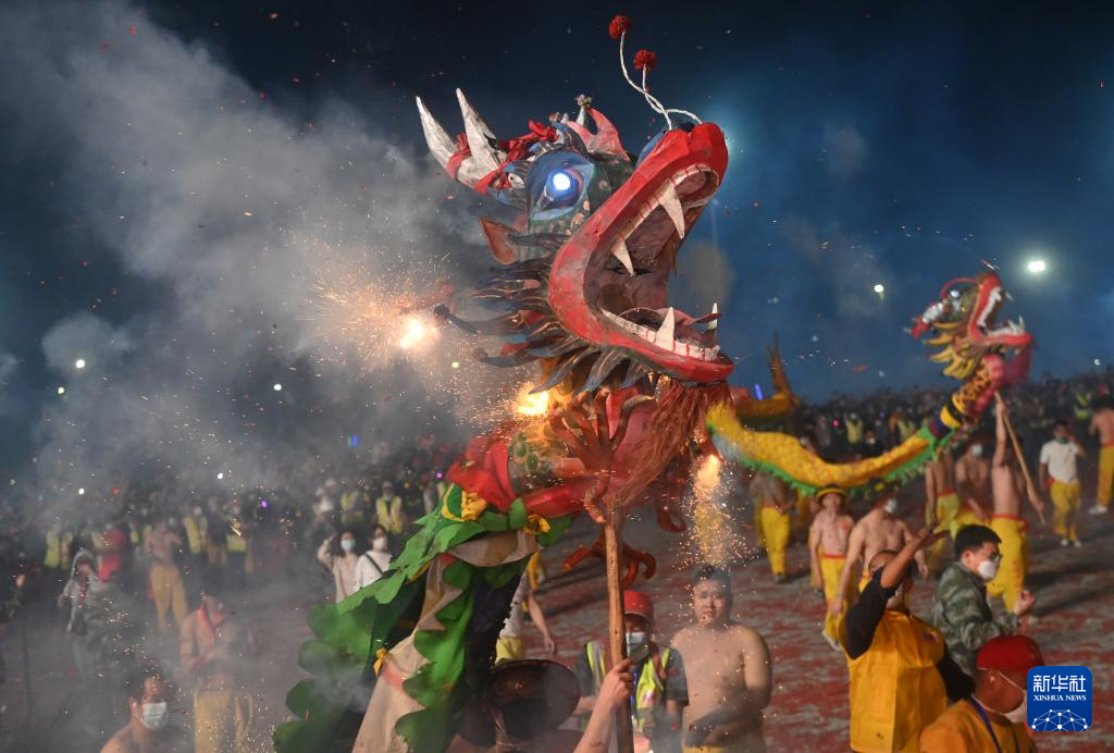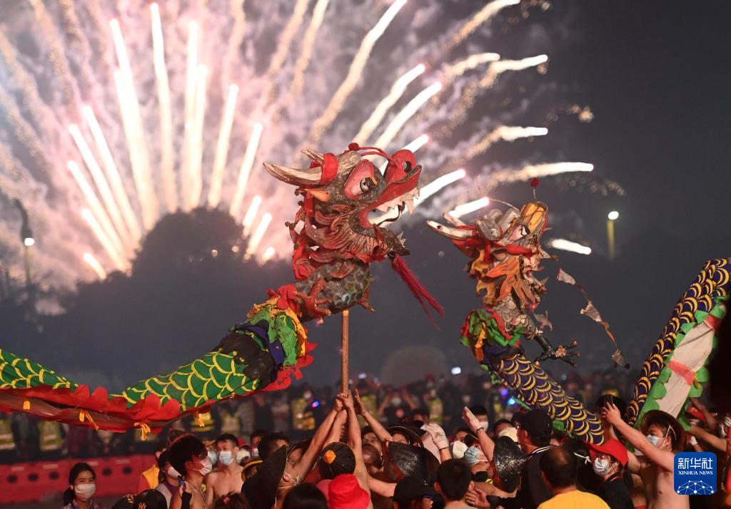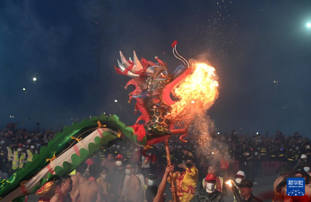 2月20日晚,广西南宁市宾阳县举行2024年炮龙节百龙舞宾州活动,超过100条炮龙在震耳欲聋的鞭炮声、锣鼓声和欢呼声中起舞。
