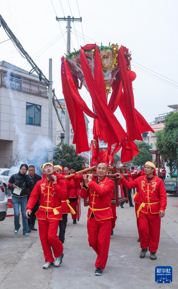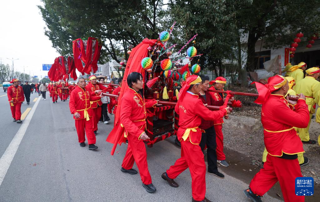 2月20日,在金华市金东区赤松镇下塔山村,一场“迎大蜡烛”的传统民俗活动火热举行。村民们扛着大蜡烛组成绵长的游艺队伍,走街串巷,祈求风调雨顺、国泰民安。